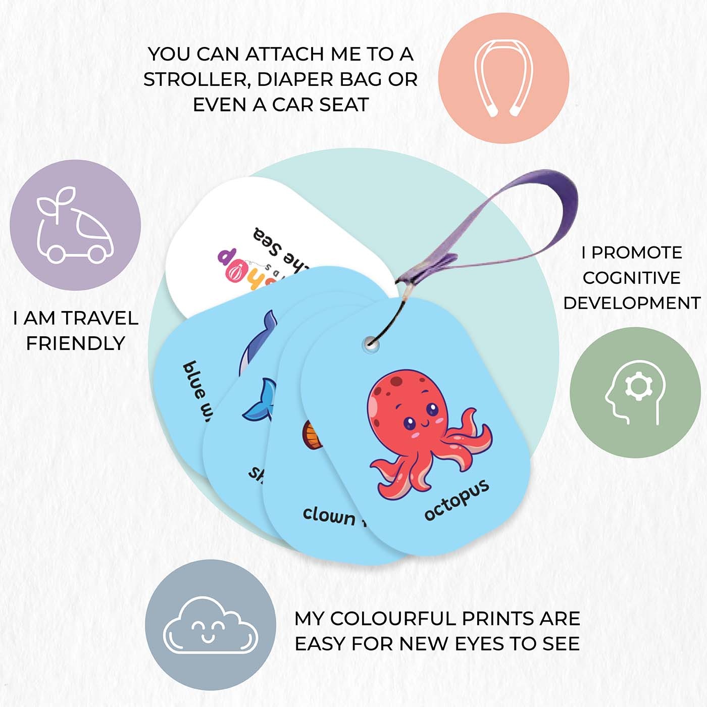 Children’s flash cards | Kids flash cards | Best quality flash cards | Sea animal flash cards for kids | Ocean flash cards | Eco-friendly | Non-toxic | Montessori learning tools | Nursery learning cards | Playroom flash cards | Educational tools for kids | Cute beige flash cards | Made in India